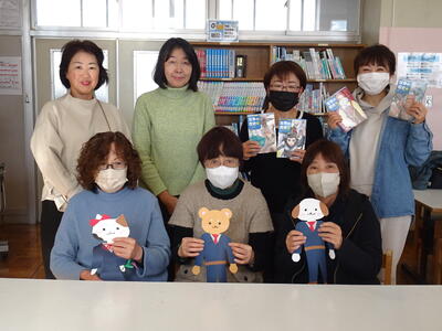 地域コーディネーターの山中さん,坂寄さんをはじめ地域の方と保護者,計7名で掲示物の作成や本のカバーかけの作業を行っていただきました。6月,9月と3回に渡り,たいへんお世話になりました。ありがとうございました。