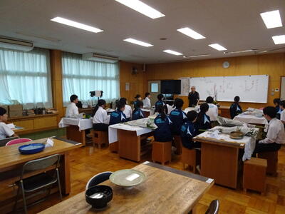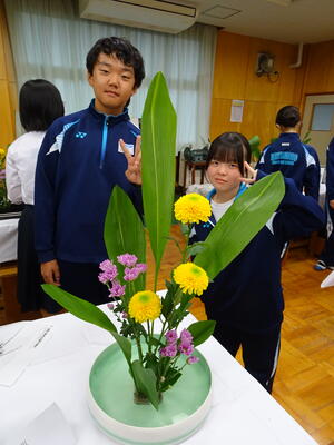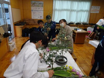 先生方のアドバイスを受けながら,みんな花器にあわせて思い思いの作品を完成させました。