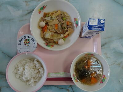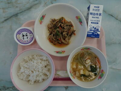 八宝菜・中華スープ・ヨーグルト・麦入りご飯・牛乳