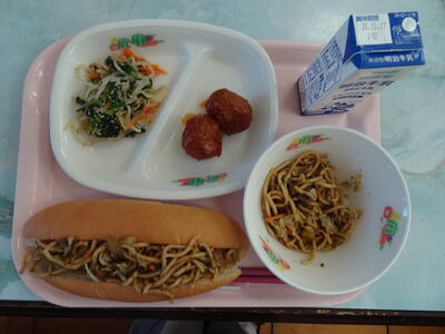 セルフ焼きそばパン・牛乳・肉団子・ナルム
