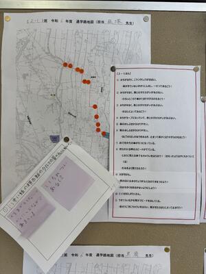 登下校は毎日のことなので,無意識に歩いていることが多いかもしれませんが,話し合った内容の詳細は覚えていなくても,意識づけには効果があるのではないかと思います。他の班が作成したマップは友達の家へ遊びに行く際に参考になるかもしれません。