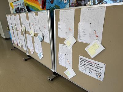12月7日の土曜一斉授業で作成した安全マップですが,登下校時に意識できるよう,昇降口に掲示しています。