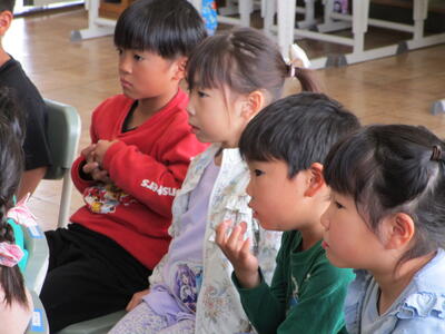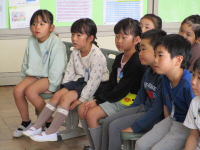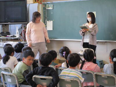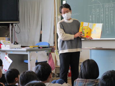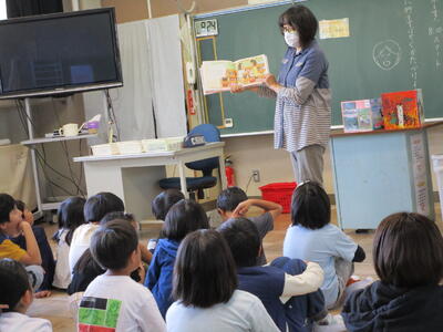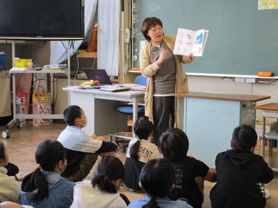 1年生は特別に2日連続で読んでいただきました。素敵な本との出会いの時間となりました。