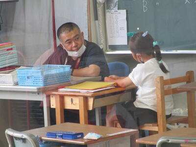 子供たちはあらかじめ話したいことを考えたうえで,担任と自由に話をします。緊張する子もいますが,多くは担任と和やかに話しています。