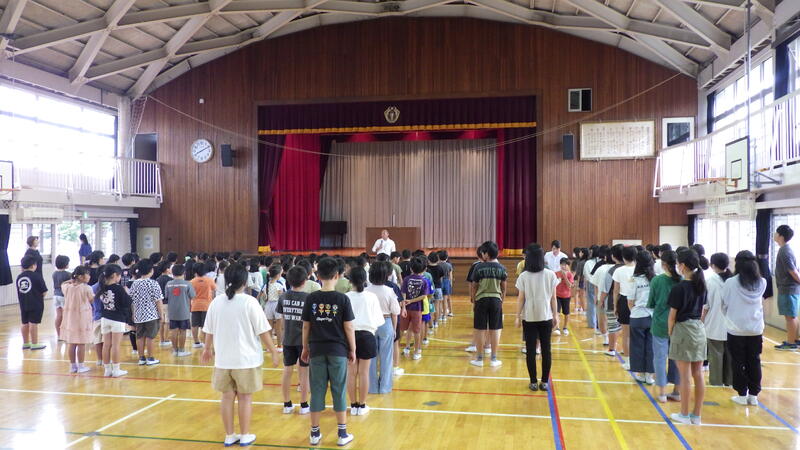 休み中は大きな事故の報告もなく,安全に過ごせていたことにまずはホッとしています。朝会では,オリンピックをはじめ,様々な感動のあった夏でもあったことに加え,日向灘沖地震や台風の迷走など,自然災害の脅威についても思い知らされた夏であったことを話しながら,夏休みを振り返りました。