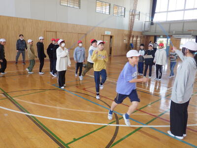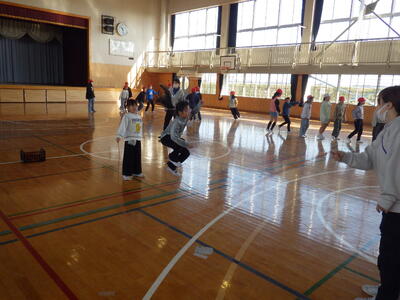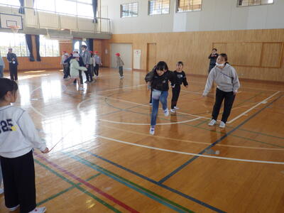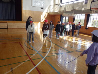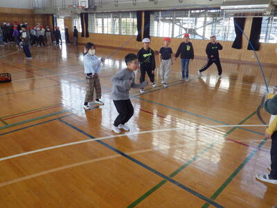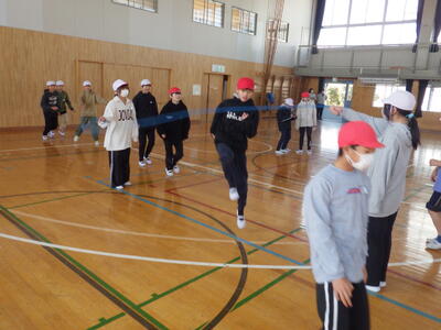 体育プロジェクト(委員会)では,体力の向上を図るため,2月2日(月)~19日(木)をスポーツタイムと位置付け,1チーム12人程度のチームによる長縄跳び記録会を実施することとなりました。