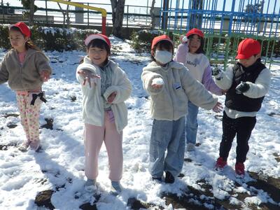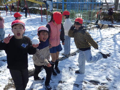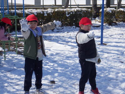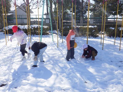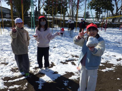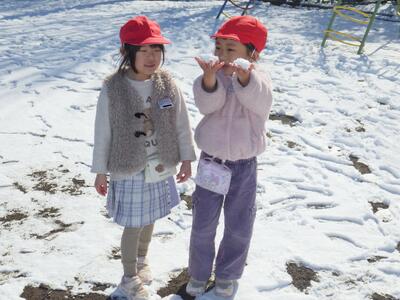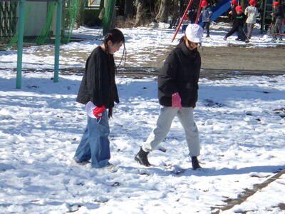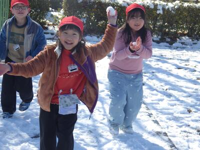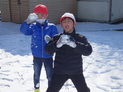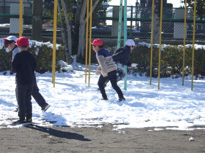 土日の降雪の影響で,校庭にはまだ雪が残っており,業間は子どもたちが雪遊びをする姿が見られました。