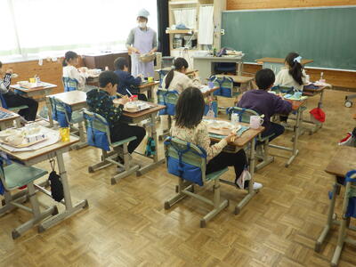 他の学年も感染症対策として,給食は前向きとなり,みんな静かに食べていました。