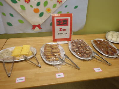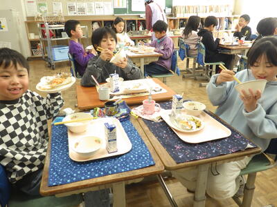 学校栄養士や調理員さん方が工夫を凝らし,子どもたちの好きそうなご馳走が並び,みんなお腹いっぱいになるまで食べていました。