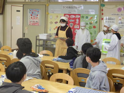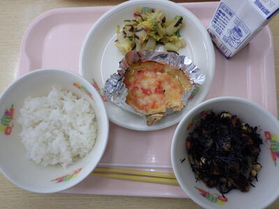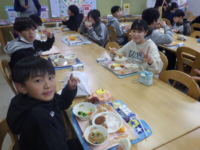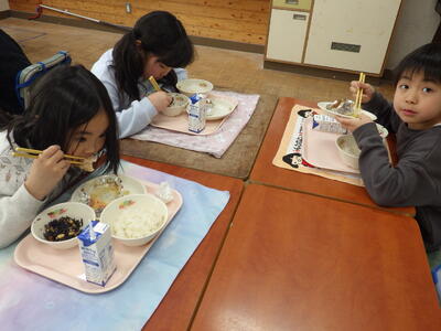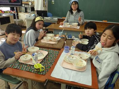 本日は,地域の方から納品いただいたトマトを使用した「とりにくのみそトマトチーズ焼き」が提供され,子どもたちは地元の食材を美味しそうに食べていました。