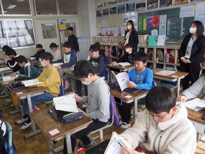 3月4日(水),小学校と中学校の連携を図る取組の一つとして,中学校の教員が6年生の授業参観に来校されました。