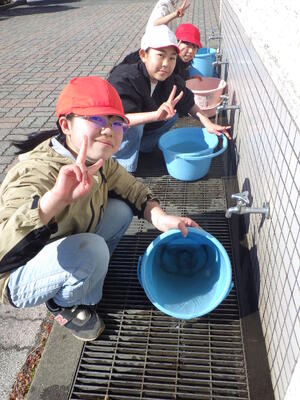 3月に放流できるよう,引き続き5年生が毎日お世話します。