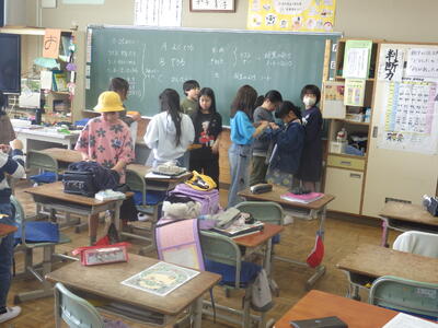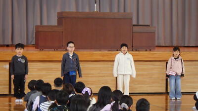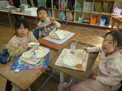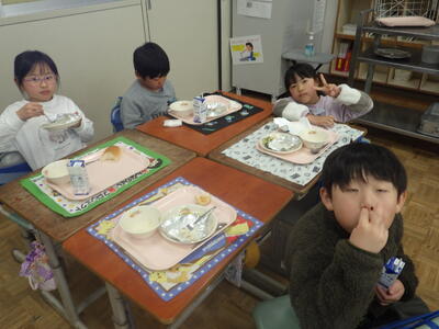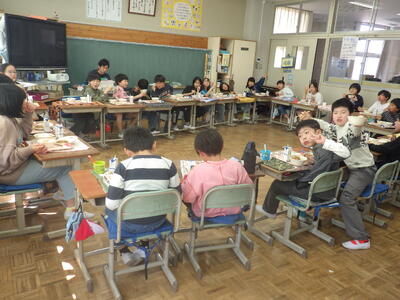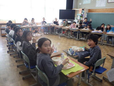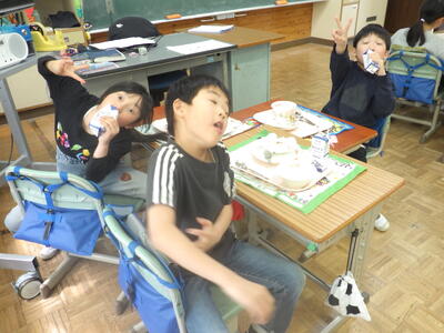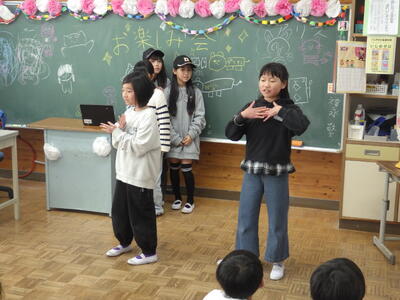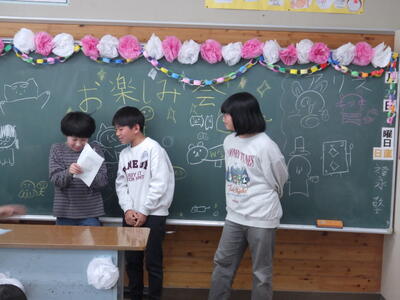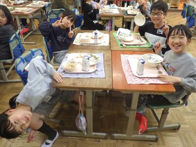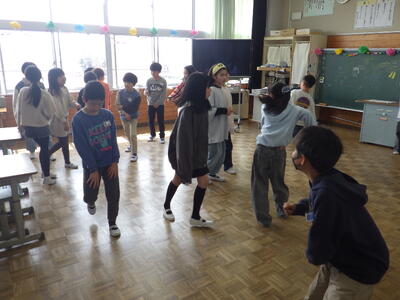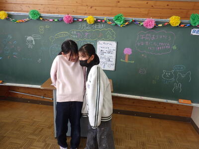 明日は4時間授業で給食後すぐに下校となることから,今日はお楽しみ会を実施したクラスやグループで楽しく会食したクラスなど,最後に一日楽しく過ごしたようです。