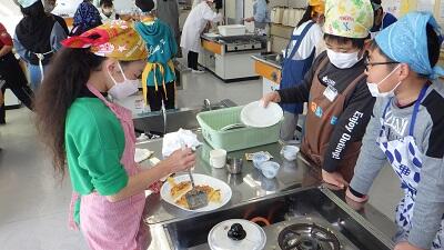 また,本日の献立,「セルフタコライス」「やさいスープ」について,学校栄養士が各クラスを回りながら「タコライス」の由来について説明するなど,食育の充実にも努めています。