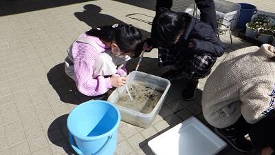 2年生が生活科の学習で,学校周辺の生き物を捕まえ,生き物ランドを開催しました。