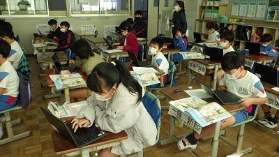 毛筆では,漢字よりもひらがなの方が書くのが難しいことが多いですが,3・4年生は筆の運び方を気を付けて,バランスのよい字が書けています。みんな,頑張っています。