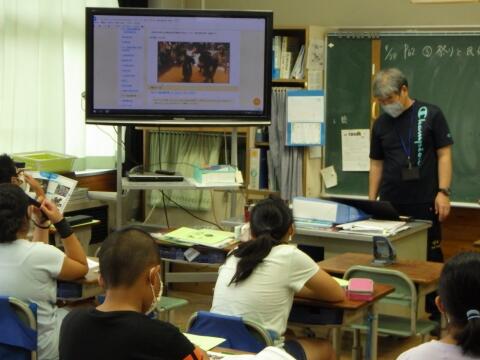 6年生で校内授業研究会を行いました。今回は「宇都宮学」についての勉強です。各班が宇都宮の伝統文化(班で1つ)について調べてきたことを発表し、それを聴いた児童たちがアドバイスするという流れで進みました。