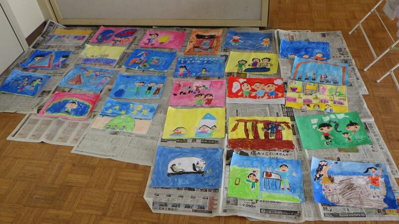 1年生が図工の授業でつくった作品が廊下に飾られています。1年生の作品はいつ見ても心が和みます。