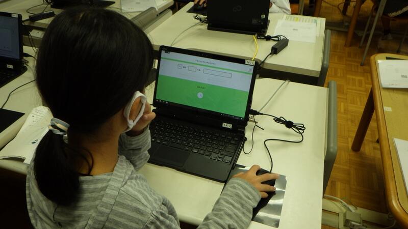 パソコンを使った授業も、いまでは普通になってきました。今日は5年生が算数の授業をやっていました。