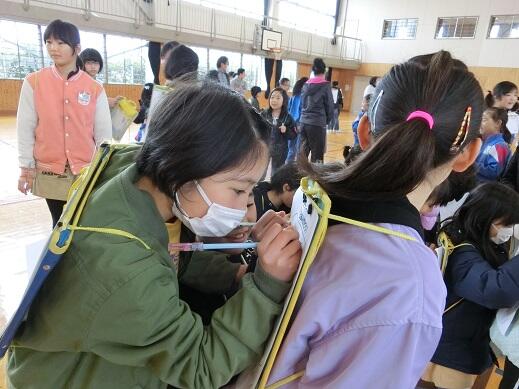 6年生は1年生にやり方を丁寧に教えてあげていました。