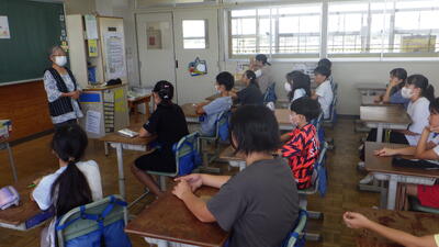 今回は,1年生が音楽,2年生が道徳,3年生が算数,4年生が体育.5年生と6年生が国語の授業を行ました。