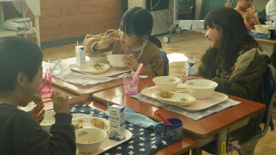 子どもたちは,「おいしい!おいしい!」と白米をほおばっていました。