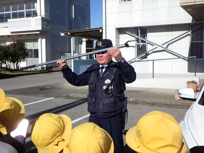 授業では,所長から警察の仕事の内容や事故・事件の件数などに関するお話をいただくとともに,実際にパトカーに乗せていただいたり警棒に触れさせていただいたり,子どもたちもより身近に感じたようです。
