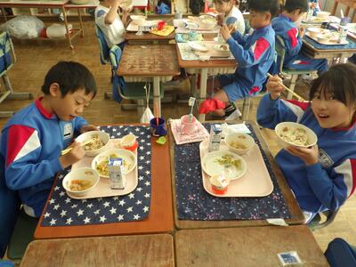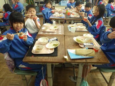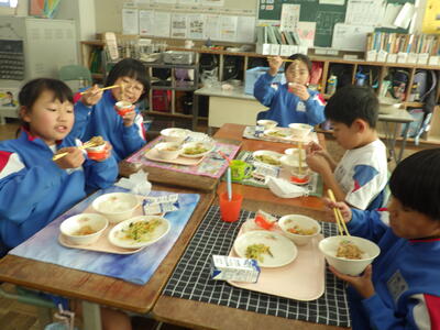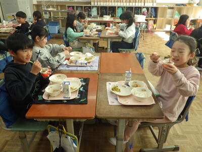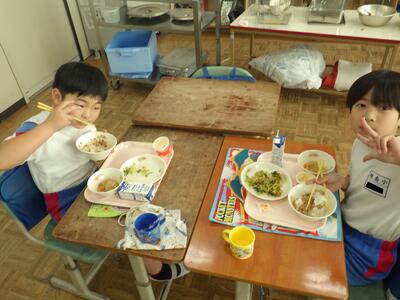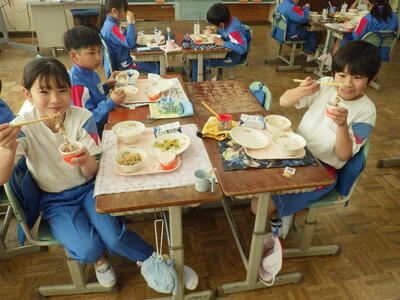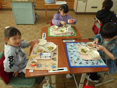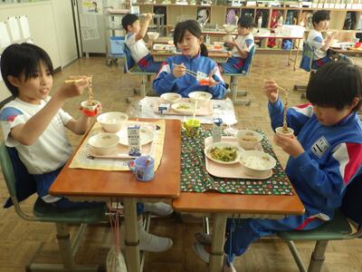 子どもたちは,納豆のネバネバと格闘しながら美味しそうに食べていました。