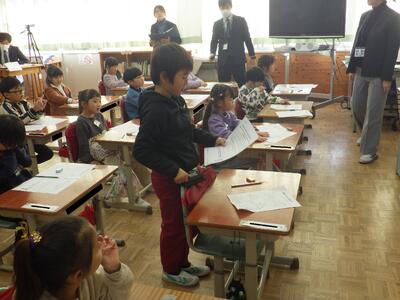 本日は,多くの教職員に見守られる中,1年生の子どもたちは自分の課題を捉え,話し合い活動を通して一人一人が意思決定を行い,実践を始めています。
