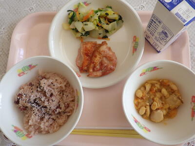 2月2日(月)の給食は,「初午給食」として,「赤飯」や「しもつかれ」が提供されました。