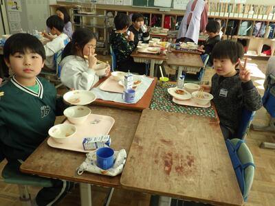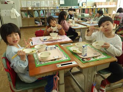 1月28日(水),1年生と5年生のランチルーム給食でした。
