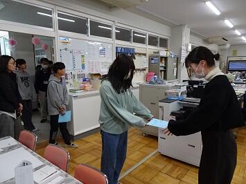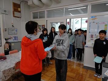 卒業を迎える6年生が休み時間を利用して、教職員へメッセージカードを添えた礼状を渡しに来ました。一人一人が心を込めて書いた言葉は心にしみます。