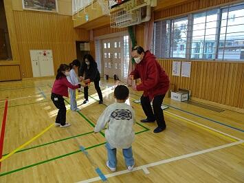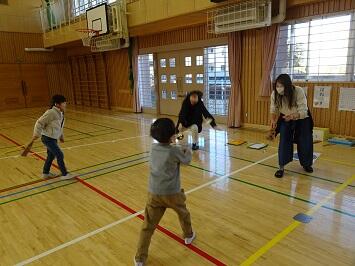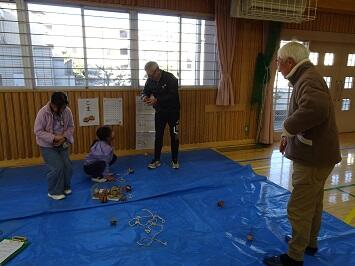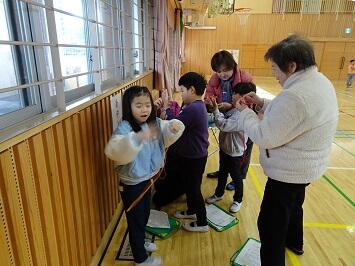 西地区社会福祉協議会のご協力をいただき、昔遊びを通して地域や協議会職員の方とふれあう活動を行いました。児童はお手玉、けん玉、こま回し、羽根つき、竹とんぼ、あやとりの6つのコーナーを時間を決めて回りました。