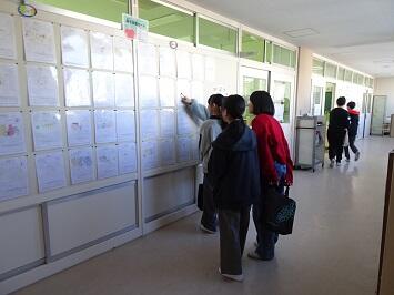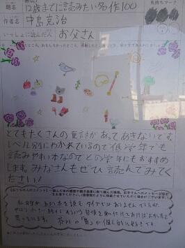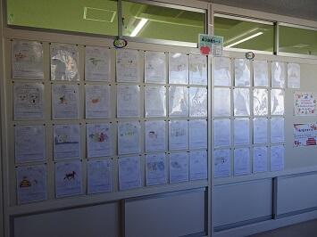 冬休みの課題で取り組んだ親子読書の記録が図書館廊下に掲示されました。期間を設定して2学年ごとに紹介していく予定です。今は2年生と6年生です。どのカードも一生懸命書かれています。