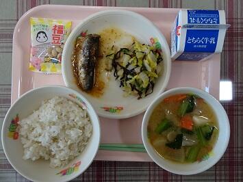 給食も季節に合わせた献立を児童に提供しました。もりもり食べて学校にいる?鬼は逃げ去ったことでしょう。