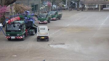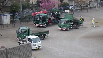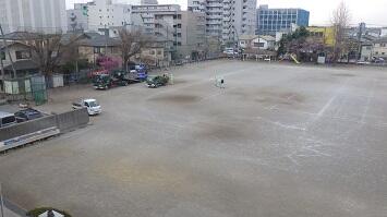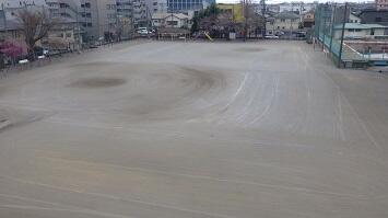 雨がふると大きな水たまりができて、なかなかきえないことがあります。そこで、すなをいれて校庭をできるだけたいらにしました。