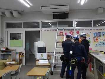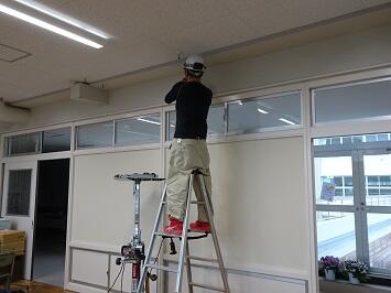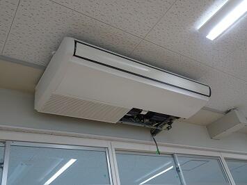 3月下旬から設置してある古いエアコンを新しいものに交換する工事を進めています。さらに、今年度中に設置していなかった特別教室にも付ける工事が行われます。