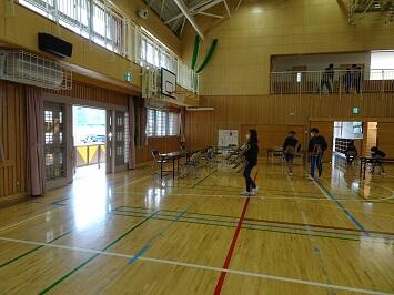 参加した保護者はいち早く体育館に入り、ストレッチと練習に臨み、第1回戦の準備をしました。