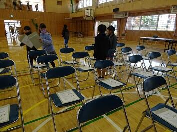21日の午後から行われる就学時健康診断に向けて5年生が会場設営を行いました。はじめに、担当教員から準備の仕方について話を聞きました。次に、いよいよ作業です。できること、すべきことを自ら考えて行動でき、そして、協力できる5年生の働きにより短時間で作業は終わりました。