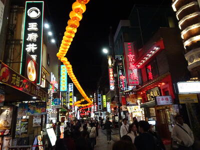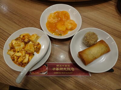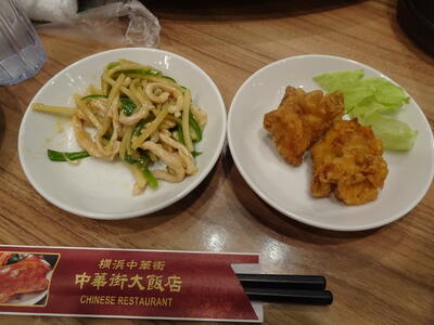 ネオンがにぎやかに感じる横浜中華街の「中華街大飯店」に入り、夕食を食べました。