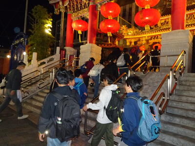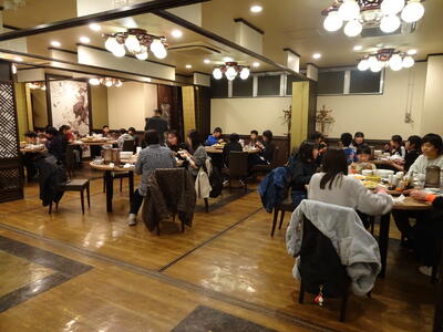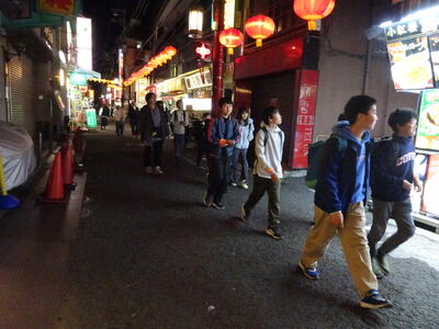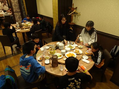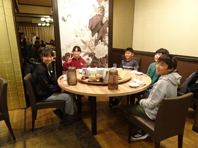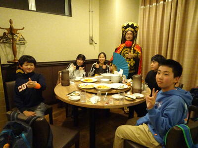 若干疲れて寝ていた児童も見られましたが、参加児童は全員元気です。荷物を整理した後は、すぐに中華街で夕食です。