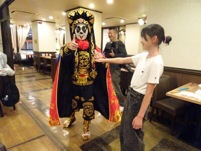 後半になると、旅行会社である関東ツアーサービス株式会社の計らいで西校児童のために中国伝統芸能である「変面」のショーを提供してくださいました。