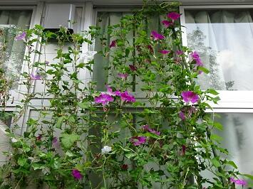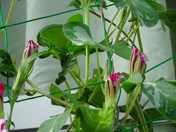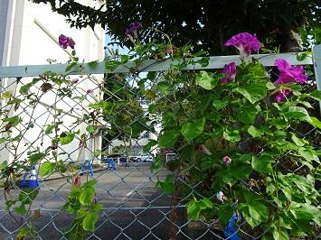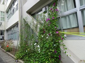 一方、正門付近や昇降口横にあるアサガオはまだ元気に咲いています。とくに、アサガオカーテンの中には、まだつぼみのものもあり、もう少し花を観察できそうです。