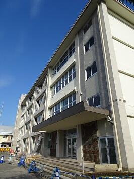 1年生昇降口のシャッターが故障したため、今朝から来賓玄関と1年生の下駄箱を北側入口へ移動しました。修理が終わるまでとしますが、しばらくかかることが想定されます。来校の皆様にはご不便をおかけしますが、ご協力のほどよろしくお願いいたします。