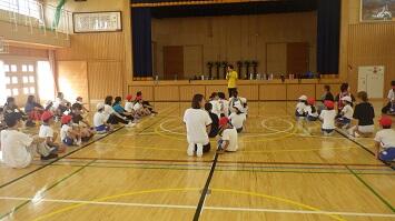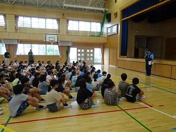 その後、全員が体育館の集合して講師2名から振り返りの話を聞きました。