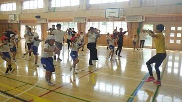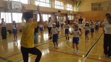 3年生は体育館を会場にして親子で体を動かす活動でした。講師をお招きして、音楽のリズムに合わせたダンスや体全体を使ってパフォーマンスすることを楽しみました。このような運動を親子で一緒にやる機会は少ないと思います。最後まで笑顔でチャレンジしていました。