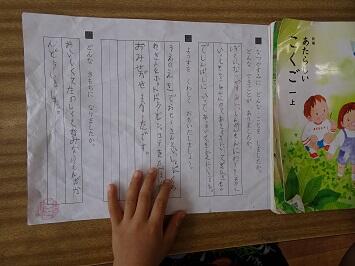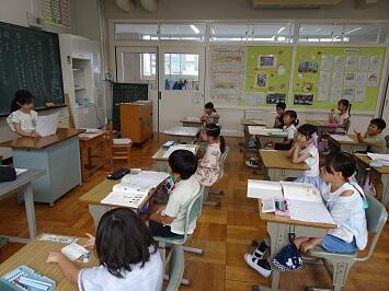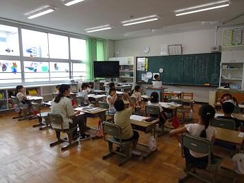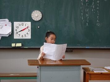 国語の授業で夏休みの思い出を作文しました。本時はそれを発表する時間でした。各児童は担任の事前指導のとおり、順序よく話すことができていました。また、聞き手側になった場面では、より詳しく知りたいことを発表者に質問していました。