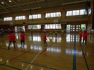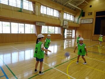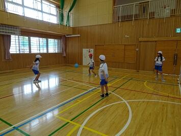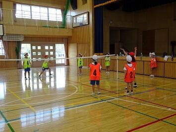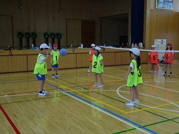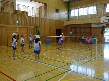 体育の時間にプレルボールというゲームをしていました。これは、柔らかいボールを手で打ちつけてバウンドさせ、決まった回数内でパスしたり、相手コートに返したりしてするゲームです。チームの仲間と協力して競い合うため、一体感も生まれます。