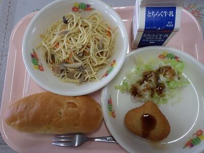今日のコロッケは調理員さんの手作りです。衣はカリッと,中はしっとりしていて,お店のコロッケよりもおいしいとお褒めの言葉をいただきました。