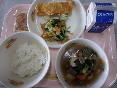 今日は栃木県ならではの食材を使用した献立です。ごぼうの灰汁でかんぴょうの卵とじの見た目がいまいちですが,味はおいしかったです。